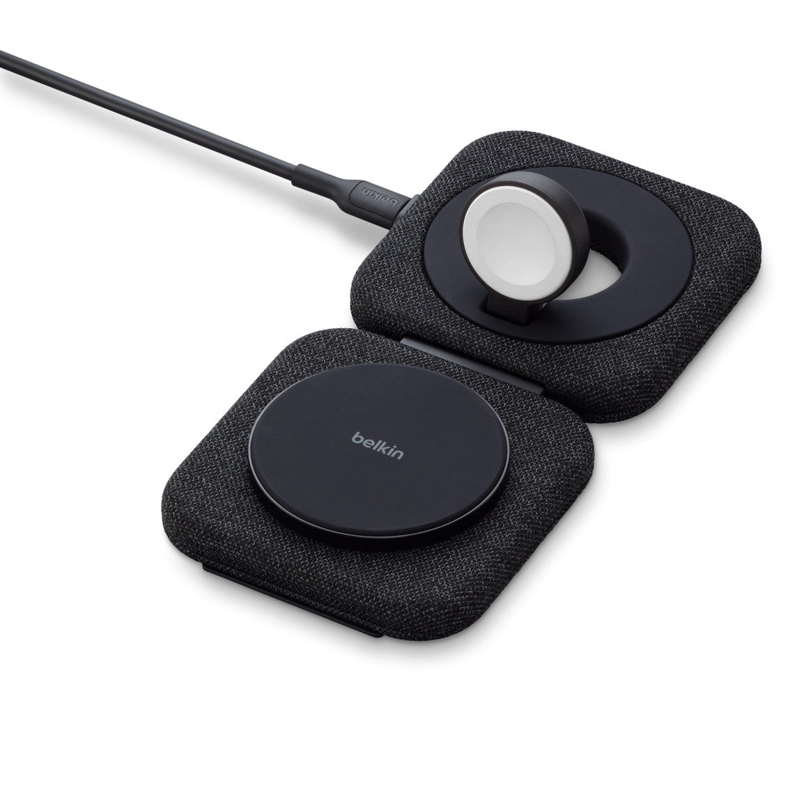 Simultaneously charges two devices (e.g. iPhone + Apple Watch / AirPods)