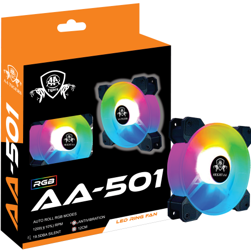 The AA-Tigers AA-501 RGB LED Ring Fan combines strong cooling performance with eye-catching RGB lighting. PWM control allows quiet and efficient operation, making it ideal for gaming PCs, high-performance builds, and showcase systems. The LED ring adds a stylish visual element to any PC build.