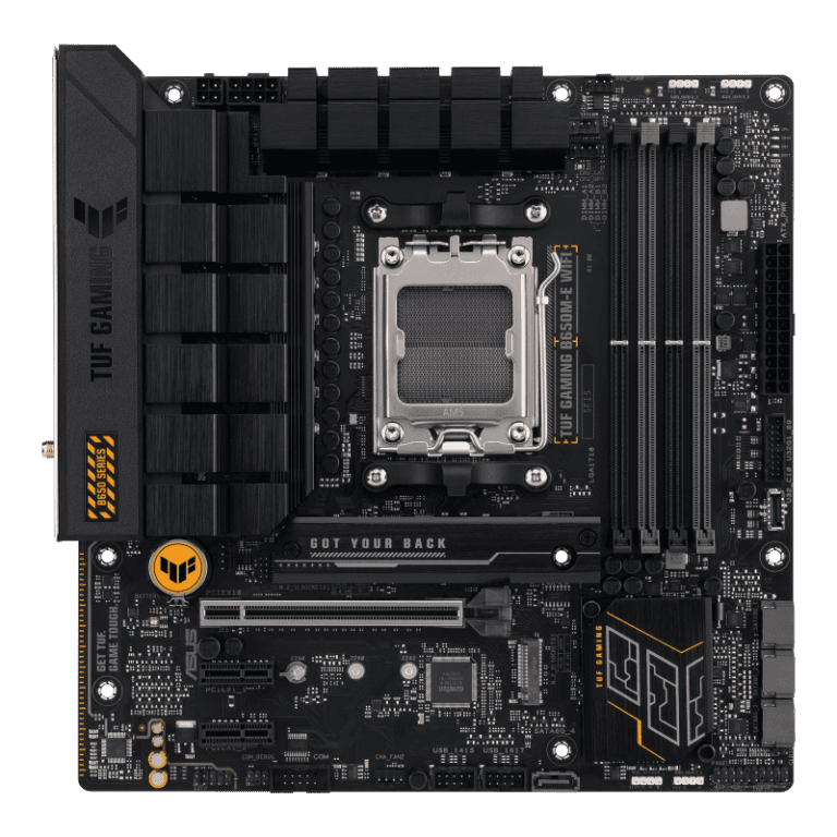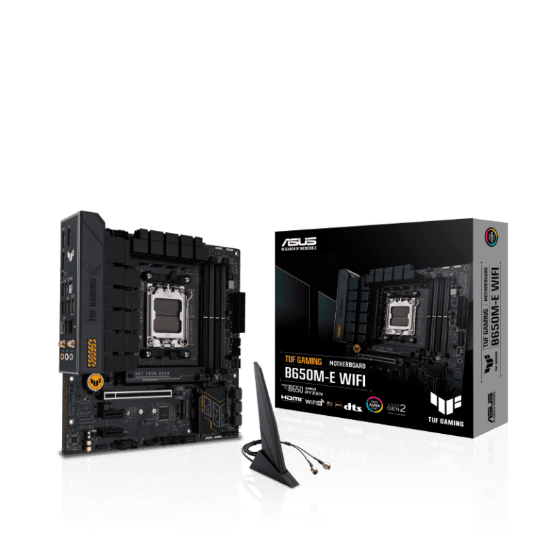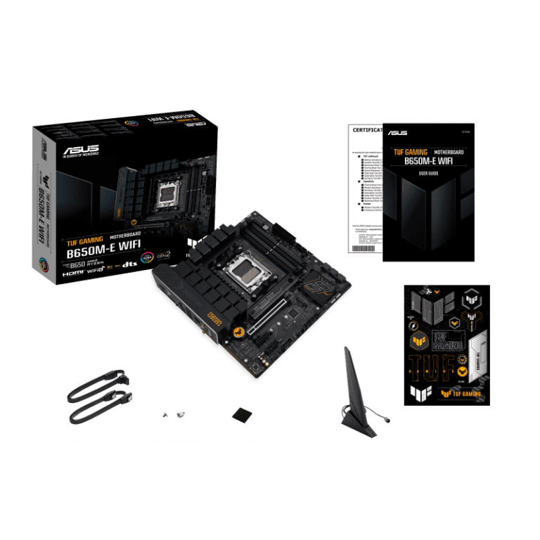 ASUS TUF Gaming B650M‑E WIFI DDR5 is a reliable micro‑ATX gaming motherboard built for AMD Ryzen AM5 processors. It supports fast DDR5 memory, offers built‑in Wi‑Fi for wireless connectivity, and has strong power delivery for smooth gaming and everyday use. This board is great for compact high‑performance PC builds.