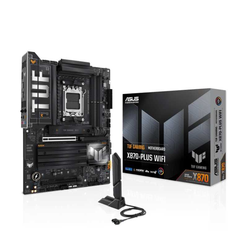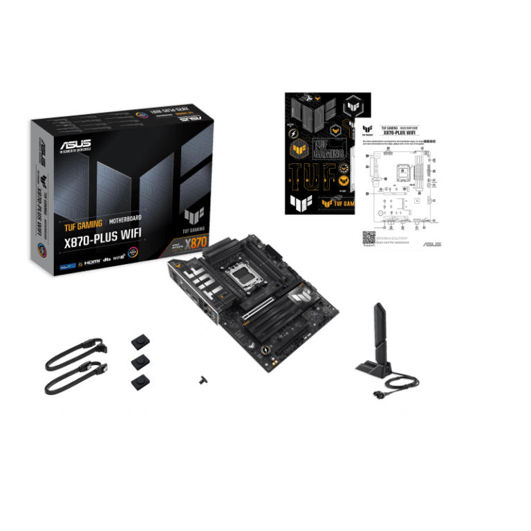 ASUS TUF Gaming X870-Plus WiFi is a durable and high-performance ATX motherboard built for AMD AM5 systems. It supports fast DDR5 RAM, next-gen GPUs, and high-speed storage. With strong cooling, reliable power delivery, and both wired and wireless networking, it is ideal for gaming, streaming, and long-term stable PC builds.