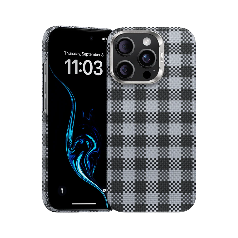 Make a bold statement with the Benks ArmorVichy Case, featuring distinct checkered or patterned Kevlar® weave for unique, sophisticated style on your iPhone 16 Pro (6.3-inch). This design-focused case combines the legendary strength of 600D DuPont™ Kevlar® with eye-catching patterns that transform your device into a fashion statement. The intricate checkered or patterned weave creates visual depth and texture while maintaining the material's structural integrity and protective properties. Full MagSafe compatibility ensures seamless wireless charging and accessory attachment with powerful magnetic alignment. Precision engineering includes precise cutout/access for the revolutionary Camera Control Button, ensuring full functionality of your Pro device's advanced features. Aerospace-grade construction provides exceptional strength—five times that of steel—while maintaining comfortable handling. Military-grade impact resistance protects against accidental drops without compromising the distinctive aesthetic. The premium textured surface enhances grip and provides sophisticated tactile feedback. Available in various pattern options that cater to different style preferences, making this case ideal for Pro users who want to express individuality while enjoying premium protection.