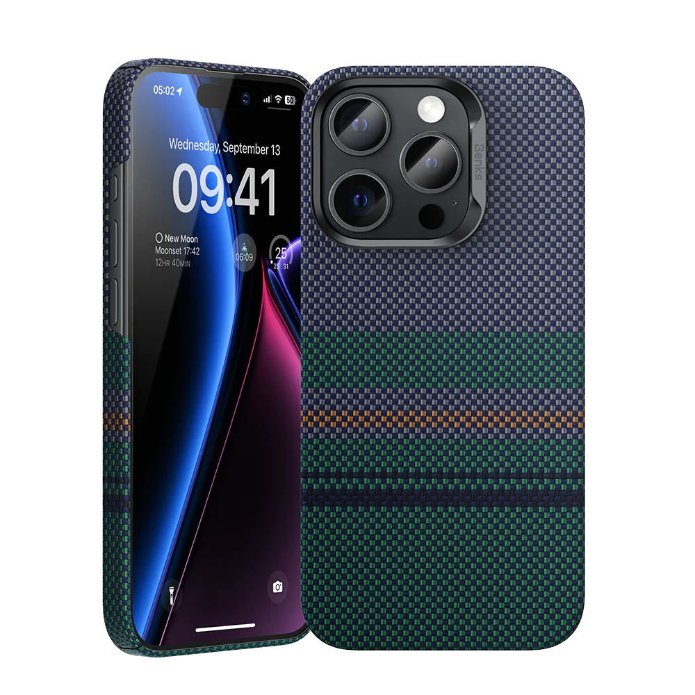 Elevate your iPhone 14 Pro with the Benks Aurora ArmorAir Case, a stunning fusion of cutting-edge protection and mesmerizing aesthetics. This multi-layered masterpiece combines the legendary strength of genuine Kevlar® Aramid fiber with a unique, iridescent Aurora finish that dynamically shifts colors with changing light. Experience the perfect balance of form and function with a slim profile that delivers uncompromising military-grade defense. The Kevlar® core provides lightweight strength that's five times stronger than steel, while the Aurora surface adds a touch of celestial beauty to your device. Engineered for seamless compatibility, this case ensures zero interference with wireless charging and maintains full signal reception. The sleek, tactile texture enhances grip while offering a premium feel that's both protective and stylish.