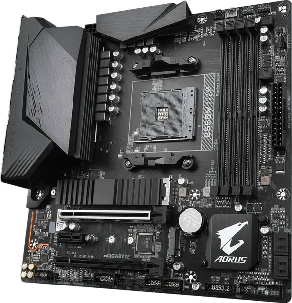 Gigabyte B550M AORUS Pro‑P is a versatile gaming motherboard for AMD Ryzen systems. It supports the latest PCIe 4.0 graphics cards and fast storage, making it great for gaming, content creation, and everyday performance. The compact mATX design fits most PC cases while offering strong features and future‑ready support.