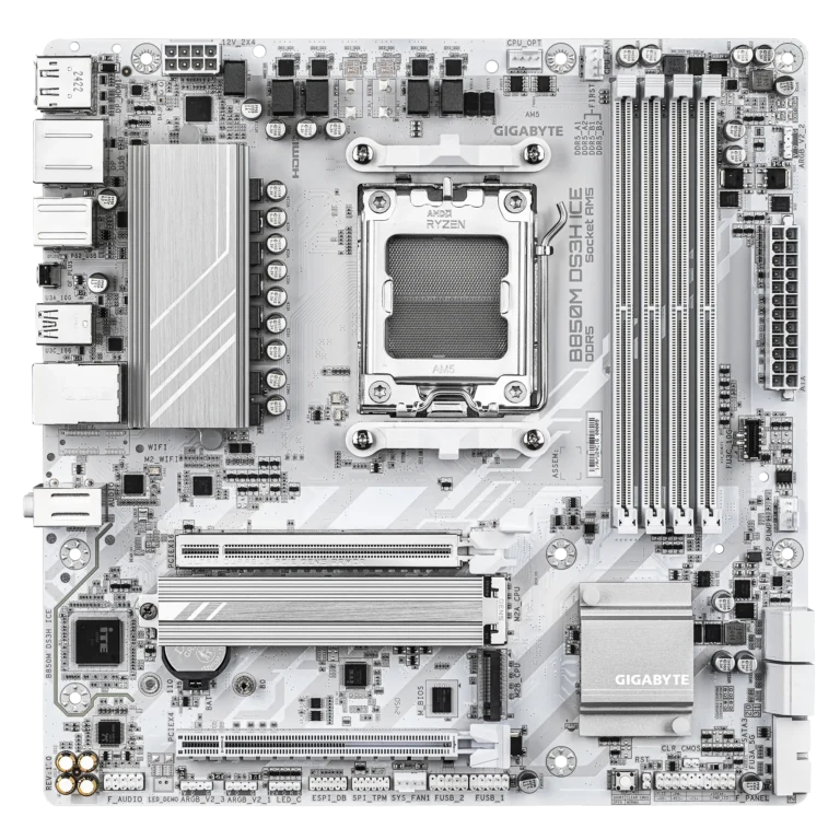 Gigabyte B850M DS3H ICE is a compact and capable gaming motherboard for AMD AM5 builds. It supports the latest Ryzen processors, fast DDR5 memory, PCIe 5.0 graphics cards, and ultra‑fast M.2 SSDs. The board also features strong networking and display options, making it great for gaming, work, or everyday use in a smaller PC build.
