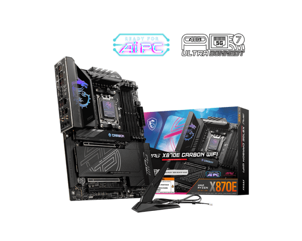 MSI MPG X870E Carbon WiFi is a premium ATX gaming motherboard built for powerful AMD AM5 systems. It supports fast DDR5 RAM, next-generation GPUs, and high-speed storage. With excellent cooling, strong power delivery, and advanced networking, this motherboard is ideal for high-end gaming, streaming, and content creation builds.