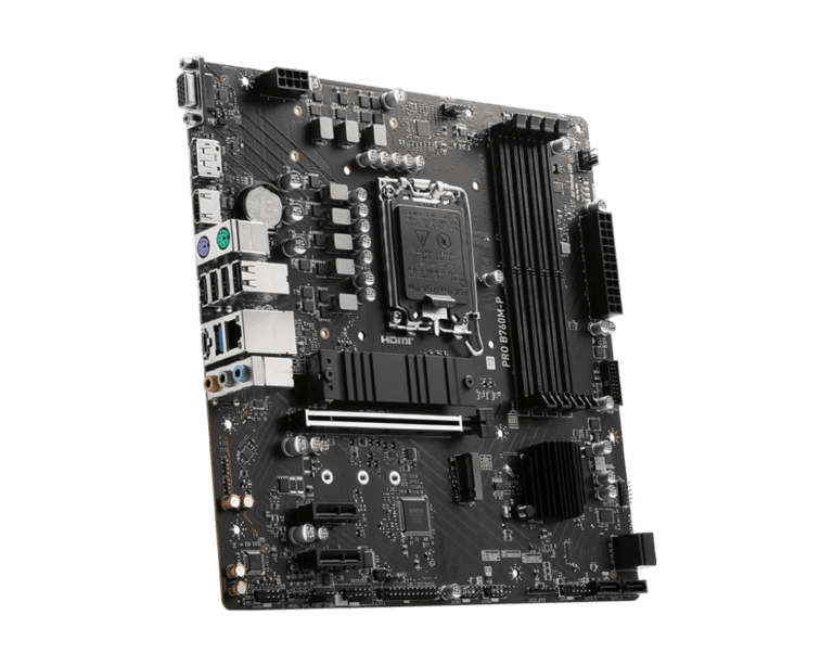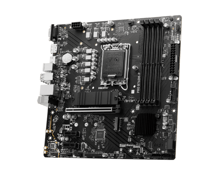 MSI PRO B760M‑P DDR5 LGA 1700 is a reliable and budget‑friendly motherboard for Intel builds. It supports fast DDR5 RAM, modern storage, and essential connectivity for gaming, work, and everyday tasks. The compact mATX design fits most PC cases while offering solid performance and expansion options.