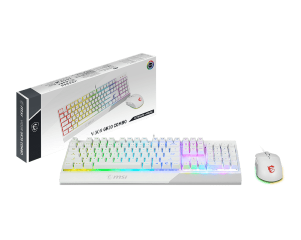 - Mechanical-like plunger switches - Water-repellent and durable design - 6-zone RGB lighting This combo provides a tactile typing experience that mimics a mechanical keyboard while remaining spill-resistant. It includes a high-precision gaming mouse for a complete out-of-the-box setup. - Layout: Full Size - Included: Gaming Mouse - Colors: Black/White