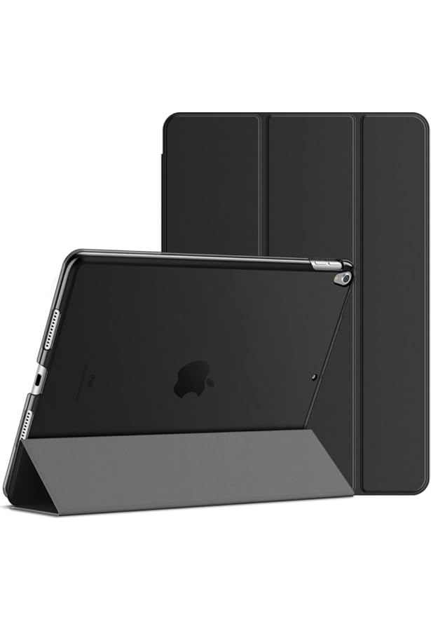 Slim front cover for iPad that attaches magnetically, supports auto wake sleep, and folds for viewing and typing.